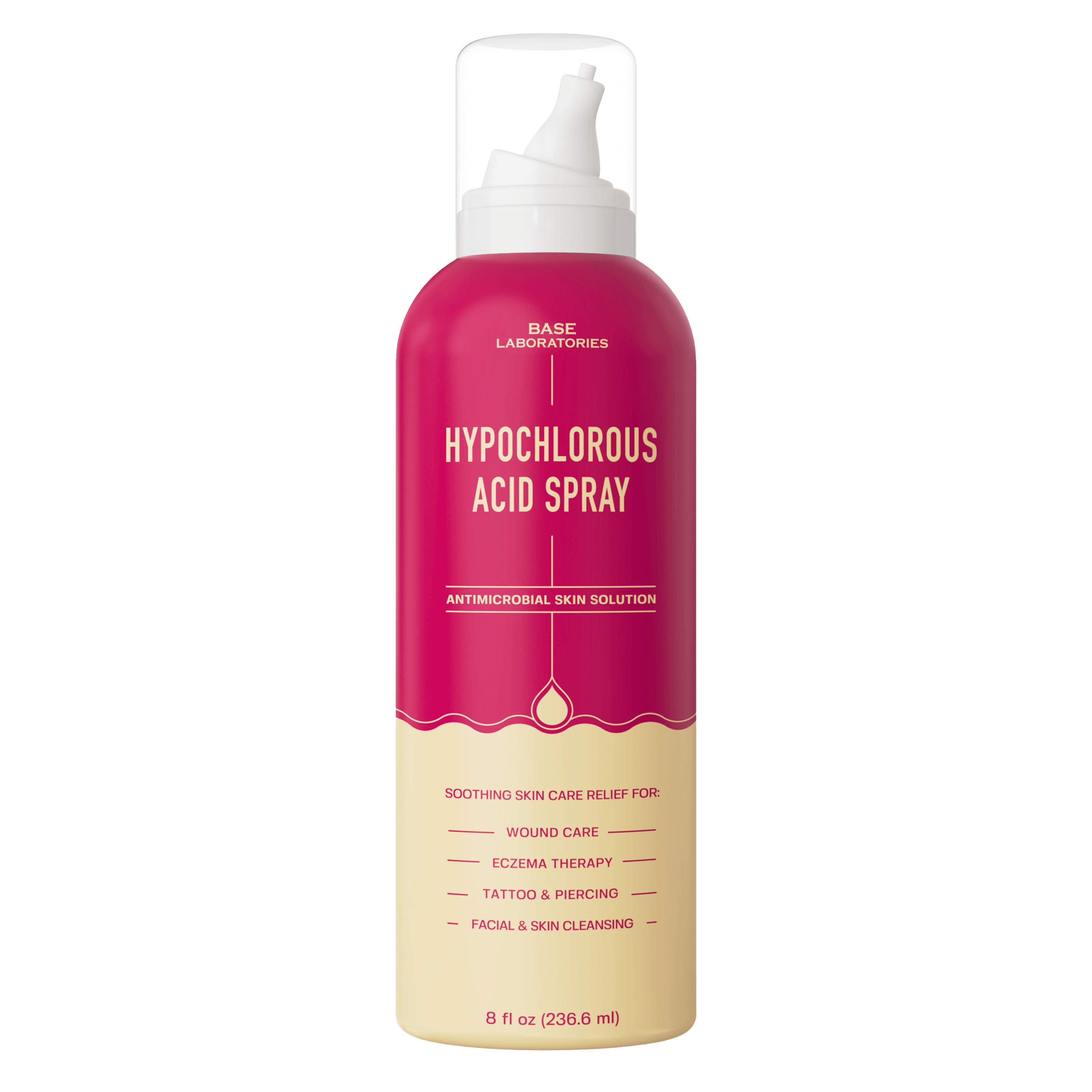 Introducing Base Laboratories Hypochlorous Acid Skin Repair Spray 3-IN-1 HEALING SKIN SPRAY - Contains active natural ingredients, including pure Hypochlorous Acid and Saline Solution also known as Sea salt. Our Skin Cleansing Repair and Recovery Spray can be used topically to accelerate the healing process of the skin while fighting irritations and inflammation. Ideal target spray for eczema treatment, wound care, piercing cleaner & tattoo aftercare.