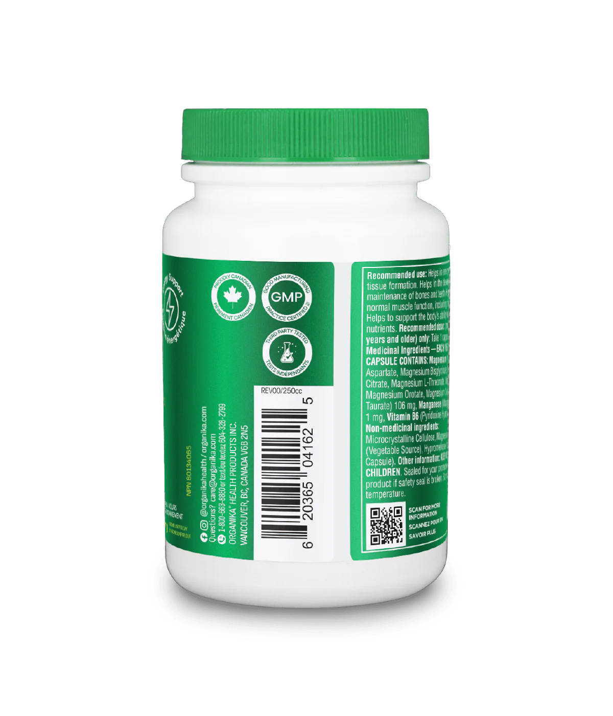 MEDICAL INGREDIENTS: EACH VEGETARIAN CAPSULE CONTAINS Magnesium (from Magnesium Aspartate, Magnesium Bisglycinate, Magnesium Citrate, Magnesium L-Threonate, Magnesium Malate, Magnesium Orotate, Magnesium Oxide, Magnesium Taurate) 106 mg, Manganese (Manganese (II) Citrate) 1 mg, Vitamin B6 (Pyridoxine Hydrochloride) 10 mg.