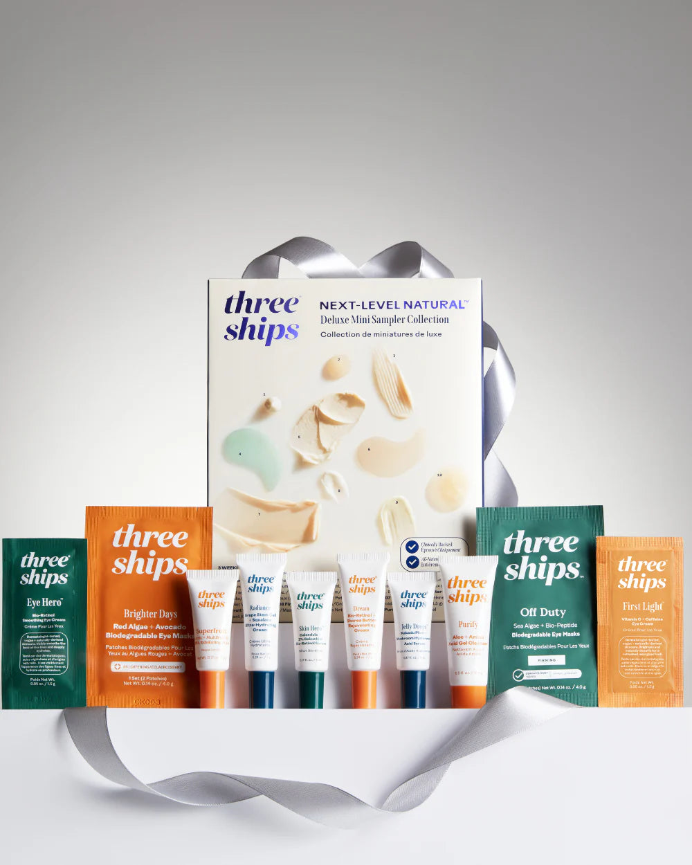 Navigate natural with confidence. Try the best of Three Ships with this dermatologist-tested, all-natural collection of best-selling deluxe minis and samples.